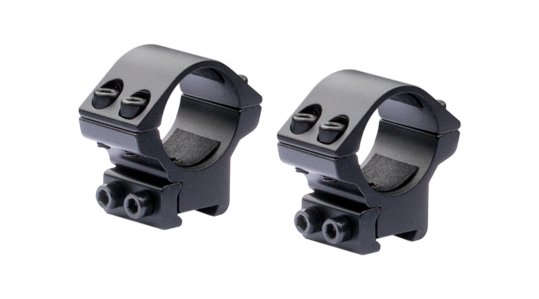Our accurate and reliable Mountmaster AO Match Mounts are made of highest grade aluminium with matte black finishing and designed for all categories of rifles. Available for 3/8” and weaver rails in low, medium and high for perfect fit of your 1” or 30mm scope. Four screws hold the upper part of the ring to the base which gives additional strength and ruggedness. This dovetail styled mounts feature across the series a recoil stop to minimize the impact of recoil. Always precise.